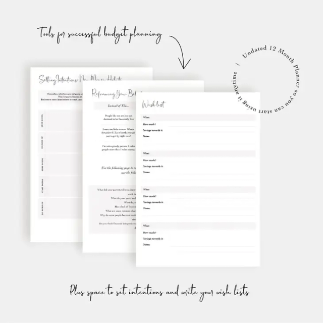 A budget planner packed with tools to successfully plan your budget and keep track of your finances now, while planning for the future.